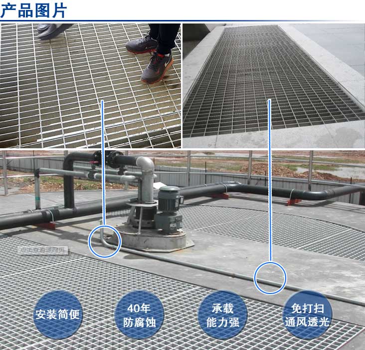 (6)采用高強度碳鋼,使鋼格柵板具有很高的強度:強度和韌性遠高于鑄鐵,可用于碼頭,機場等大跨度和重載荷的環境。